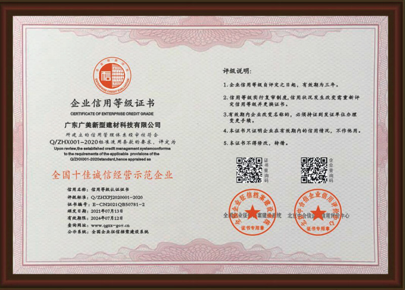 全國十佳誠信經營示范企業
